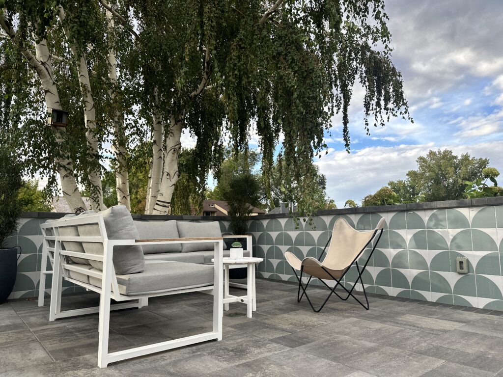 The oversized front yard took forever to mow and was largely unused, due to the lack of any privacy. The original sprinkler system didn’t provide enough water for both the grass and the large birch tree, so both were suffering.